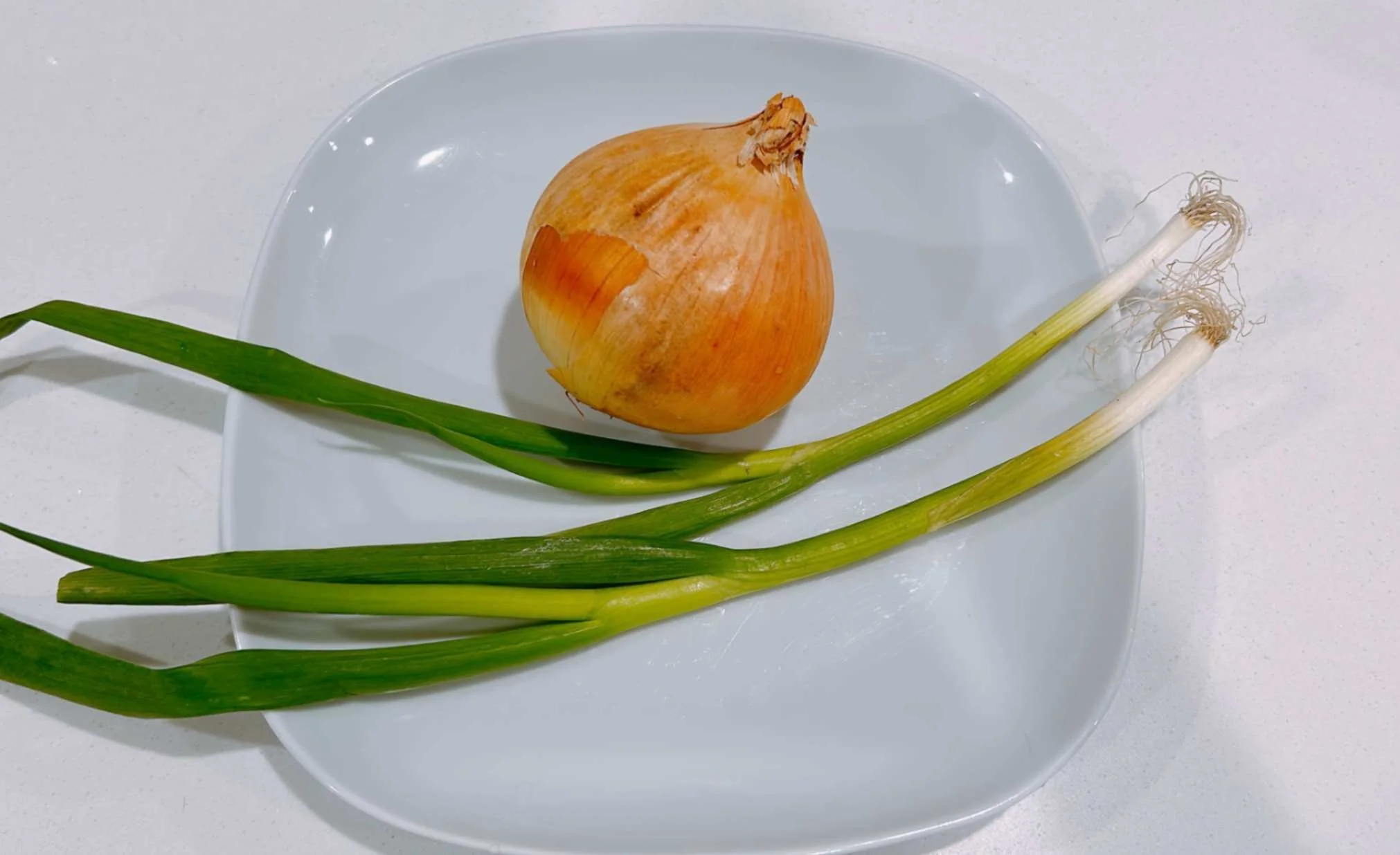 1. Cut onion in half and slice it into thinner slices. Cut the spring onions into small pieces.